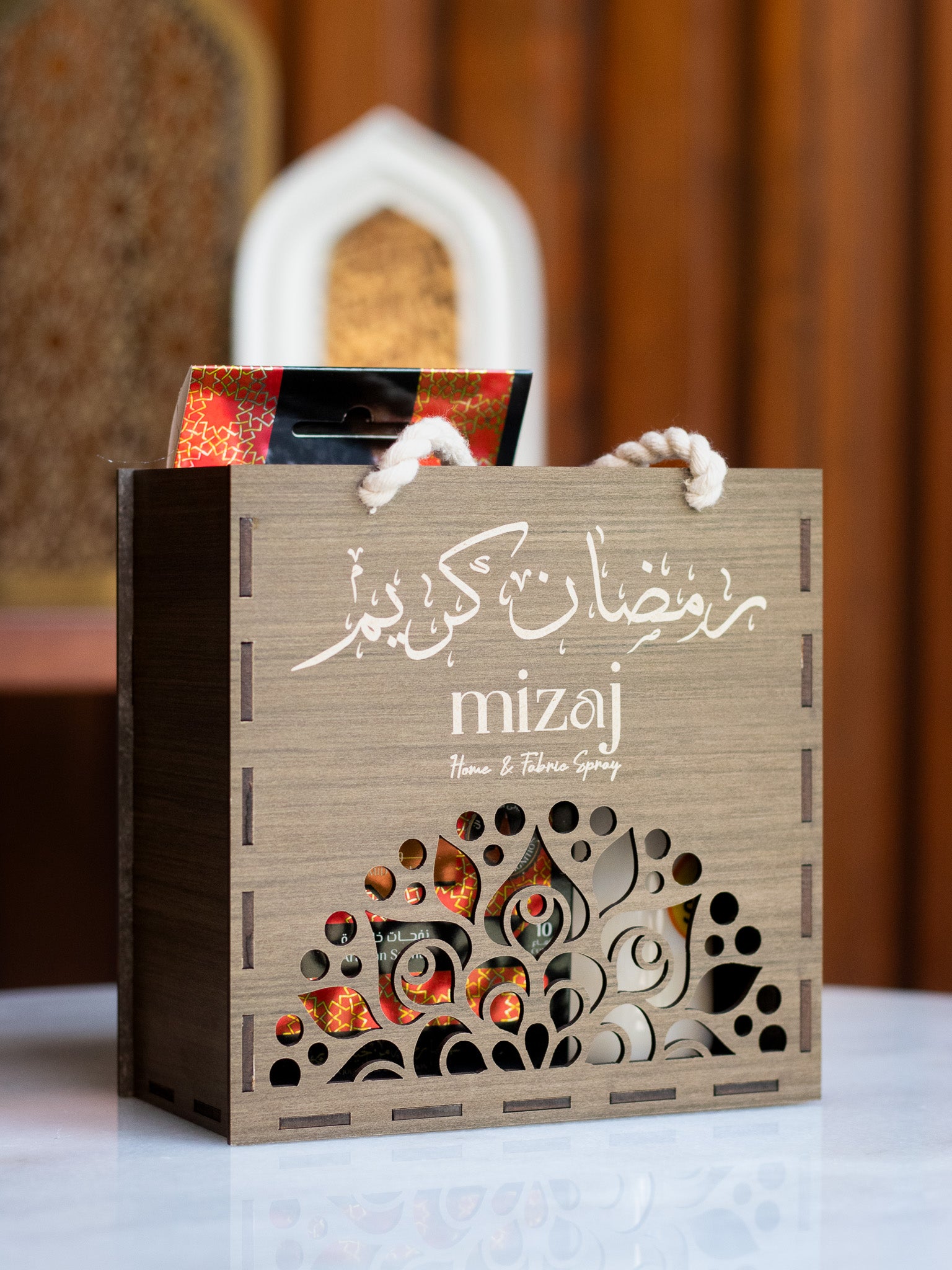 شنطة خشبية فاخرة صُممت بعناية لتجسّد روح الشهر الكريم.